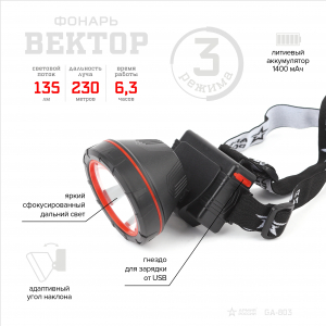 Фонарь GA-803 АРМИЯ РОССИИ налобный Вектор [5Вт, литий, USB]