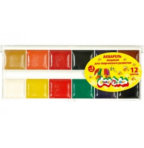 Акваpель 12цв. "Каляка-Маляка" медовая, б/к, пл. уп. АМККМ12Е