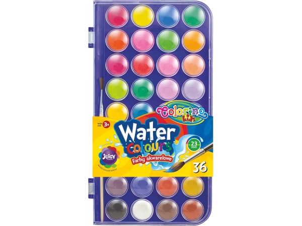 Акварель 36 цв. + кисточка в пластиковой упаковке (малые блоки)