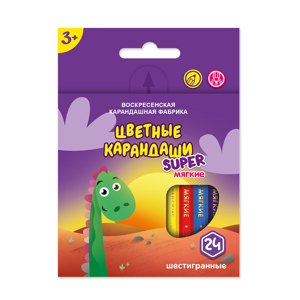 Карандаши 24 цв. "Динозаврик" "Super", короткие