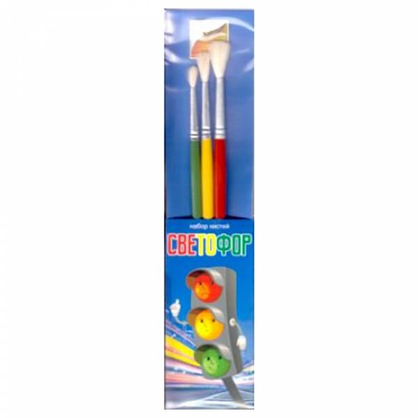 Кисти н-р "Светофор" 3шт. (коза кр. №1,3,5) цветные ручки