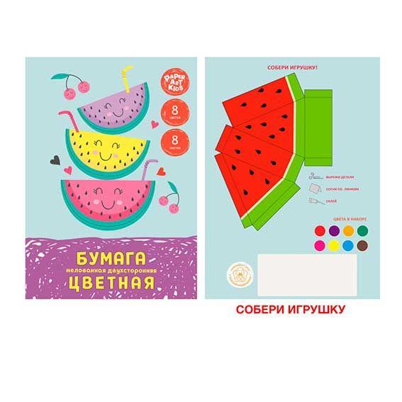 Бумага цв. двухст. мел. А4 8цв/8л. на скреп. "Арбузный фреш" ЦБМ288377