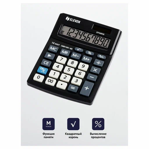 Калькулятор 10р "Eleven" 102*137*31мм, черный, CMB1001-BK