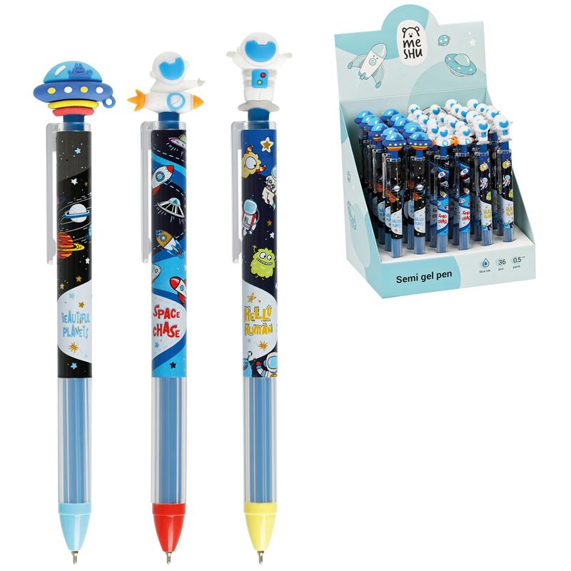 Ручка шар. автомат. синяя 0,5мм MESHU "Space Aliens" с топпером MS_61000