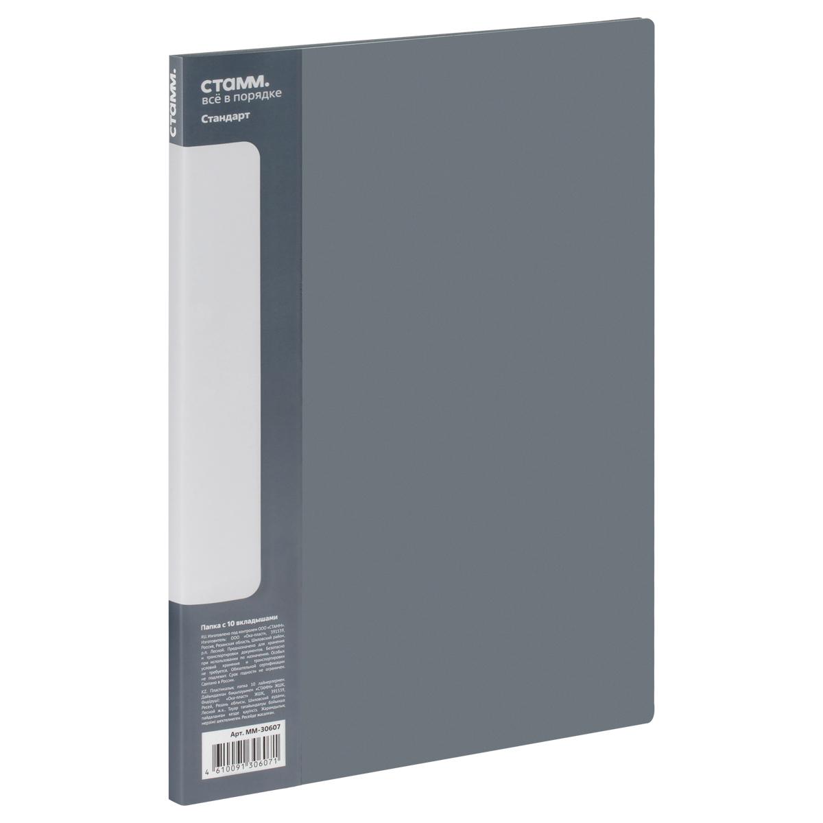 Папка с 10 вкл. "Стандарт" серая 600мкм 9мм ММ-30607