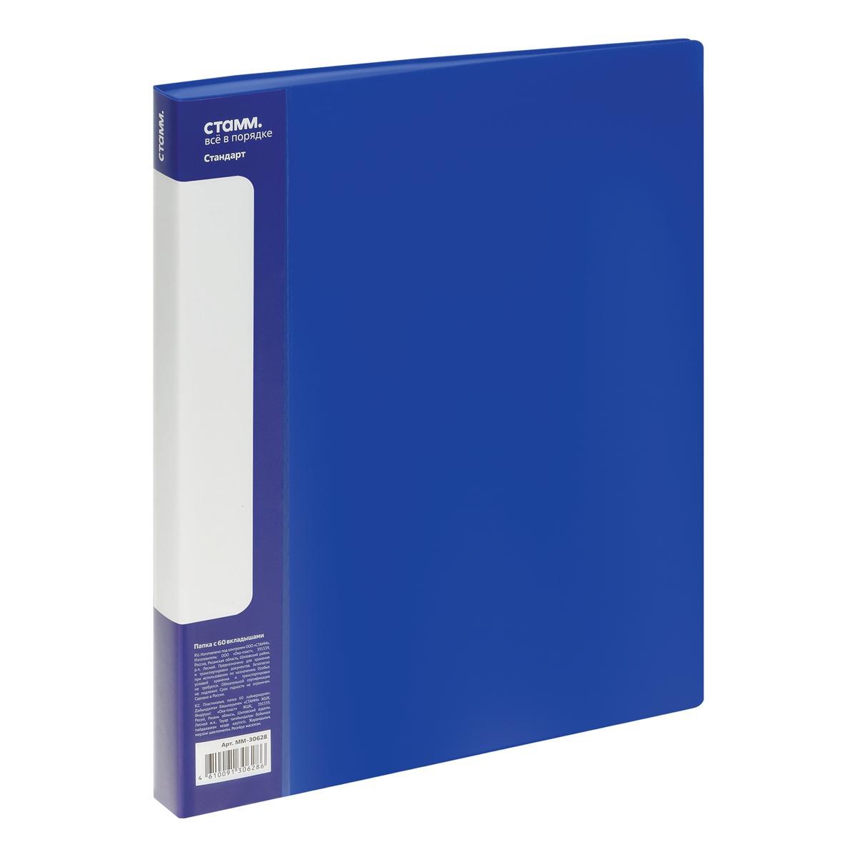 Папка с 60 вклад.Стамм "Стандарт" 21мм, 700мкм синяя ММ-30628