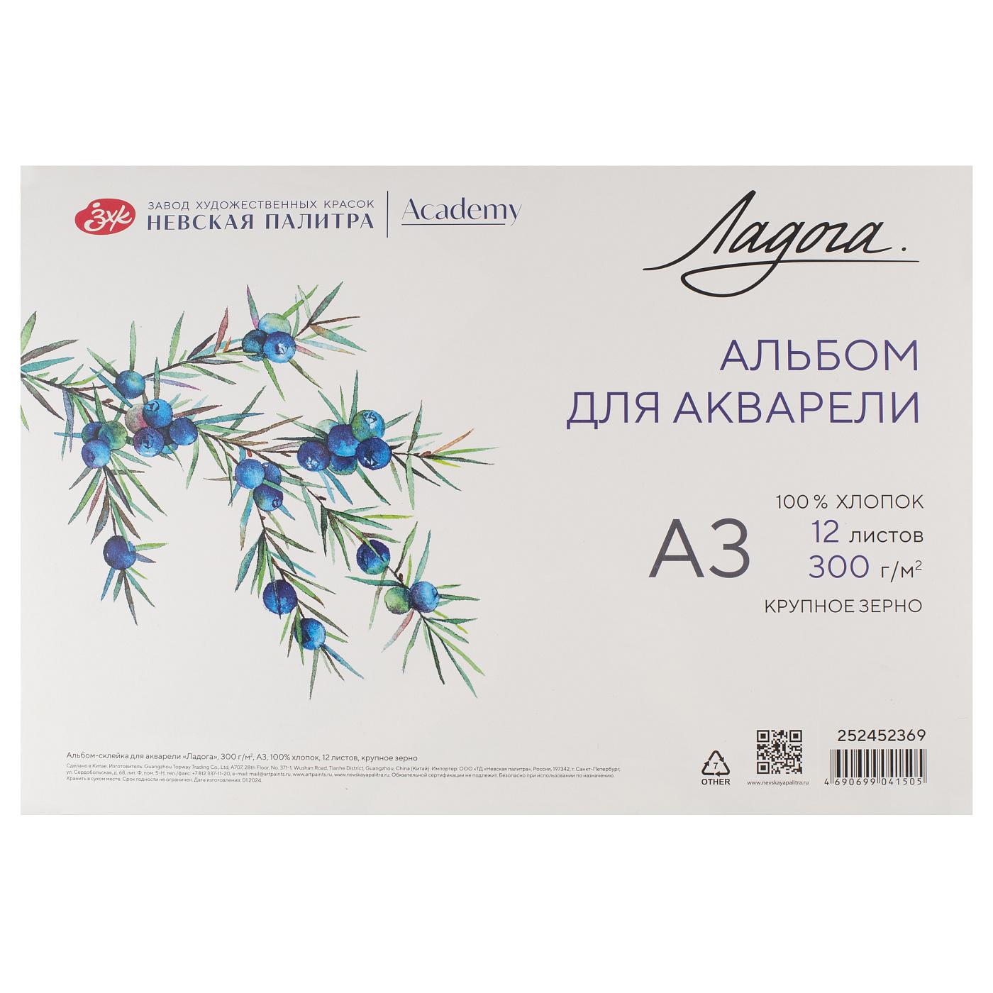 Альбом-склейка для акварели "Ладога", А3, 300 г/м2, 100% хлопок, 12л, к/з