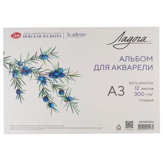 Альбом-склейка для акварели "Ладога", А3, 300 г/м2, 100% хлопок, 12л, с/з