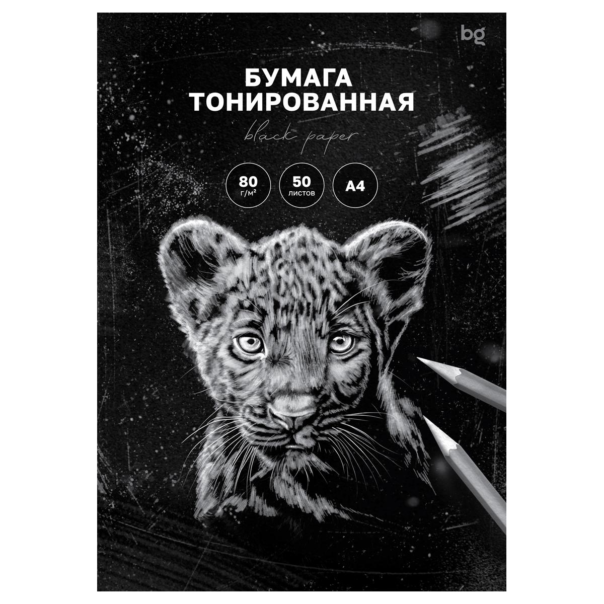 Бумага тонированная А4 BG, черная для эскизов, 80г/м2, 50л