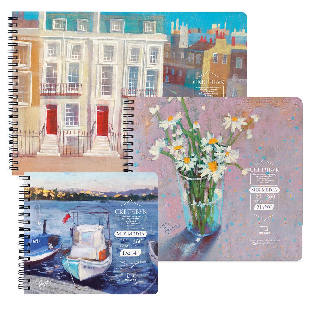 Скетчбук MIX MEDIA для акрила, гуаши и смешанных техник, 30*21см, 360 г/м, 20л