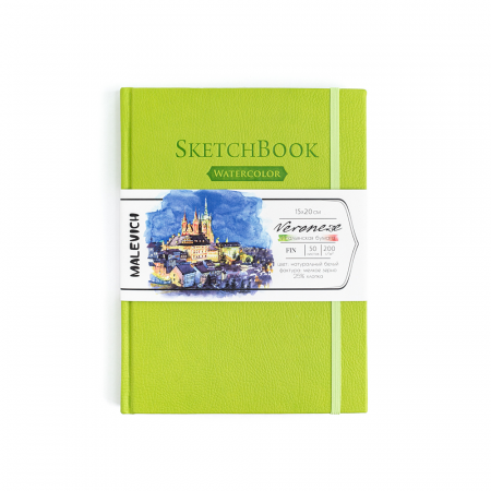 Скетчбук для акварели Veroneze, салатовый, 200 г/м, 15х20 см, 50л