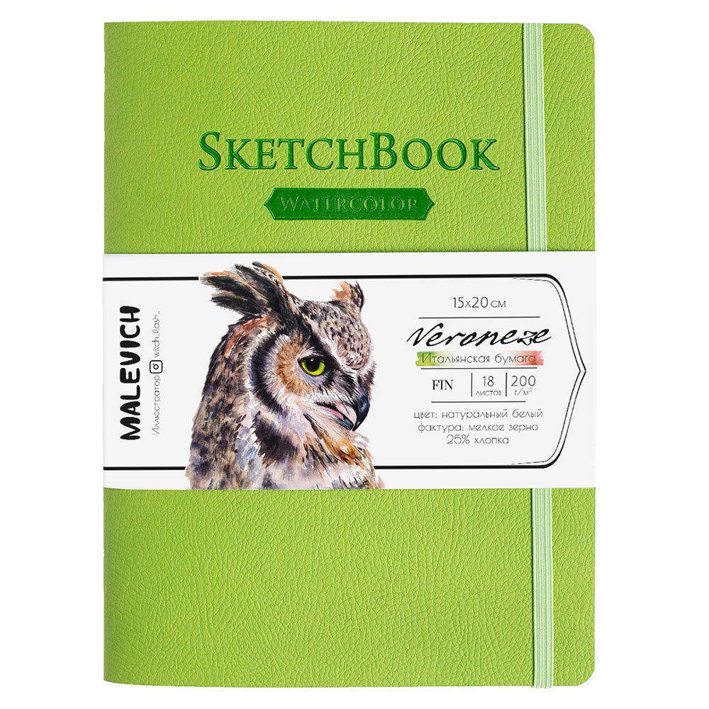Скетчбук для акварели Veroneze, салатовый, 200 г/м, 15x20 см, 18л