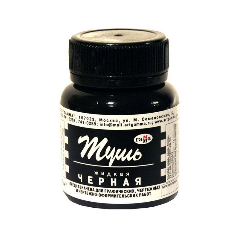 Тушь жидкая чеpная, 70мл