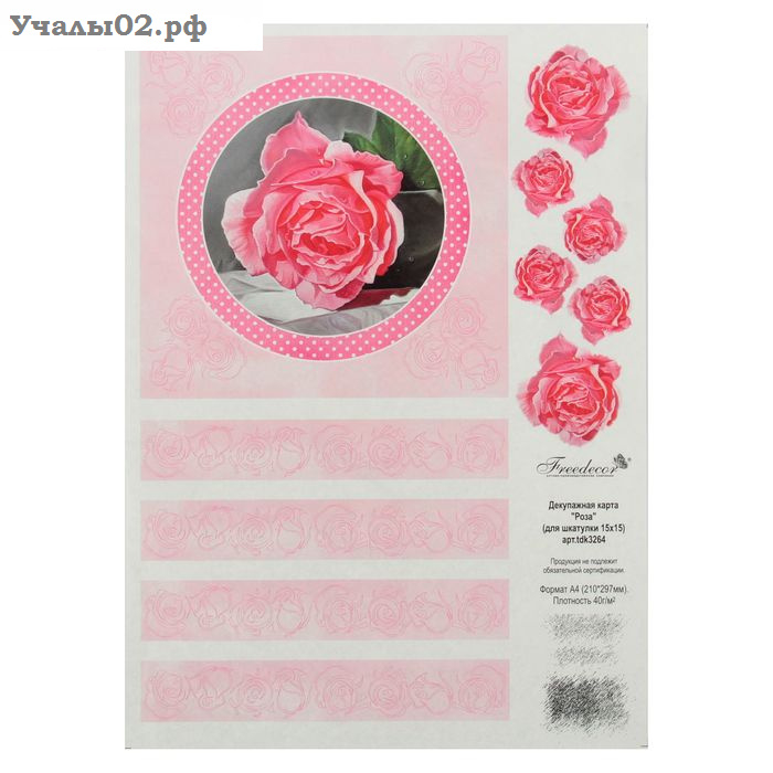 Карта для декупажа А4 "Роза" 40гр.