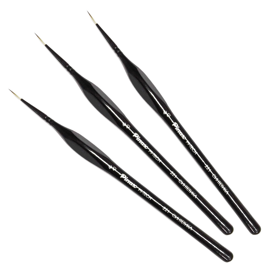 Тонкие кисти для миниатюр от производителя Pinax серии "Hi-tech" с черной ручкой.