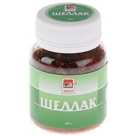 Шеллак – это природная смола, имеет вид тонких непрозрачных чешуек от лимонного до темно-коричневого цвета. Предназначен для приготовления шеллачного лака. Шеллак растворяется в спиртовом растворе (1:5), полученный раствор фильтруют. Выпускается в пластиковом флаконе массой 30 грамм
