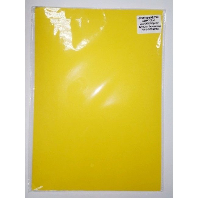 Фотобумага Эконом-класс ЖЁЛТАЯ, А4 МАТОВАЯ САМОКЛЕЯЩАЯСЯ 80г/м 20л. (шт.)
