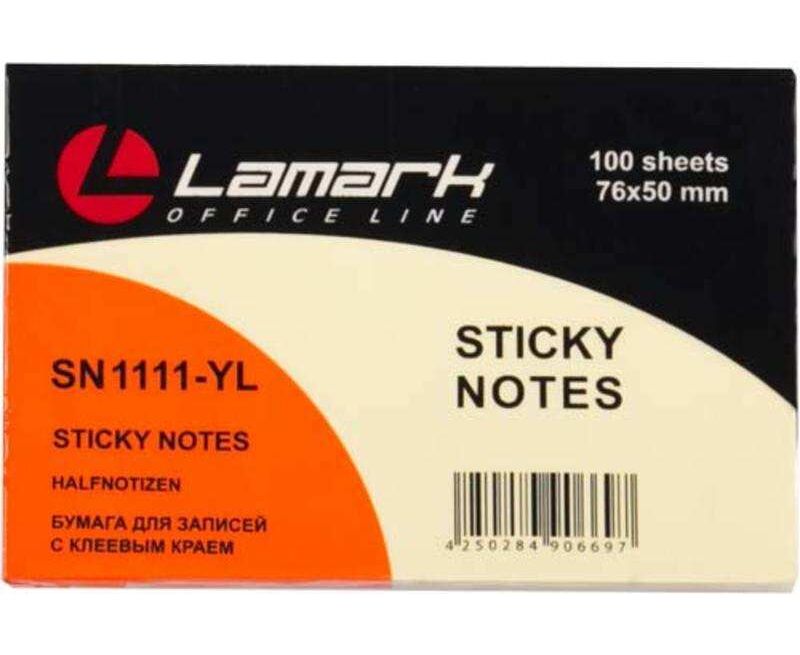 Бумага с клеев. краем 51*76мм 100л. желтая пастель "Lamark" SN1111-YL