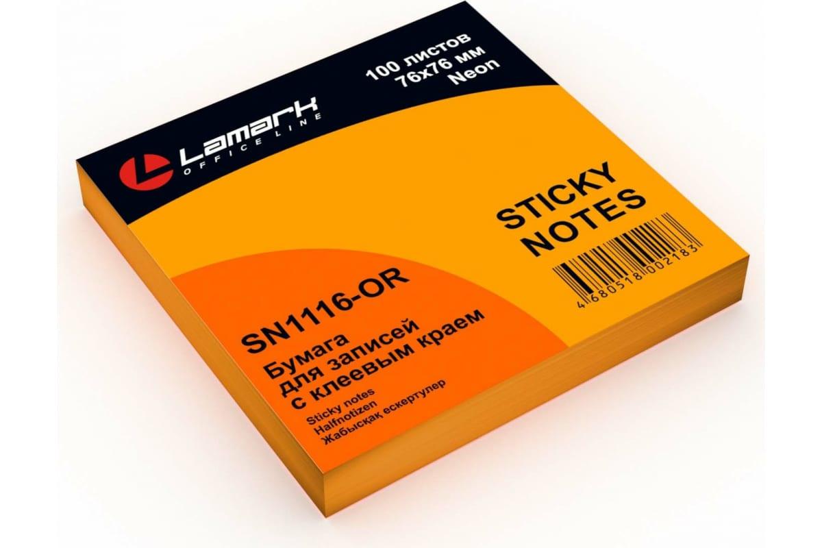 Бумага с клеев. краем 76*76мм 100л. оранжевая неон. "Lamark" SN1116-OR