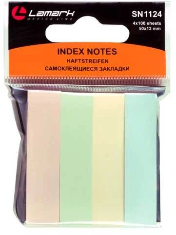 Этикетки-закладки самоклеящ. (50*12мм) 4*100л. пастель, бумажные "Lamark"1124
