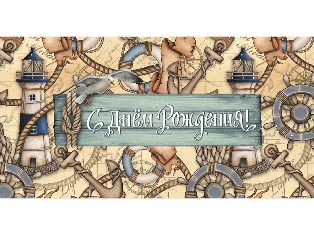Конверт для денег "С днем рождения" (морской) ЛХ-0135