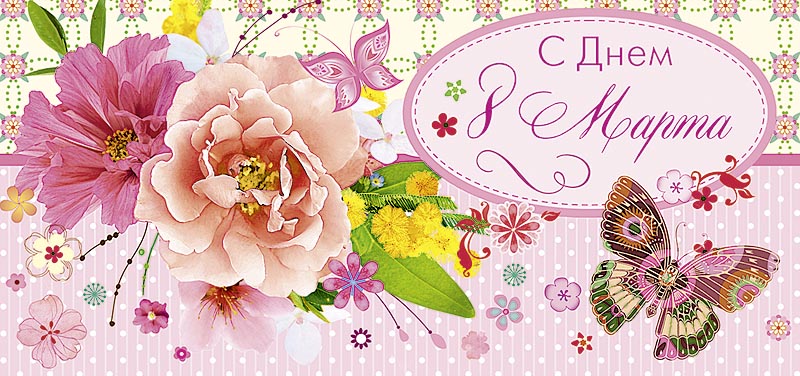 Открытка Конверт для денег 8 Марта! в ассортименте