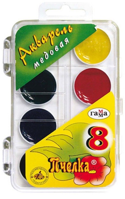 Акваpель 8цв. "Гамма. Пчелка" медовая, б/к, пл. уп. 212068