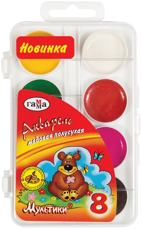 Акварель 8цв. "Гамма. Мультики" медовая, б/к, пл/к 211046_8