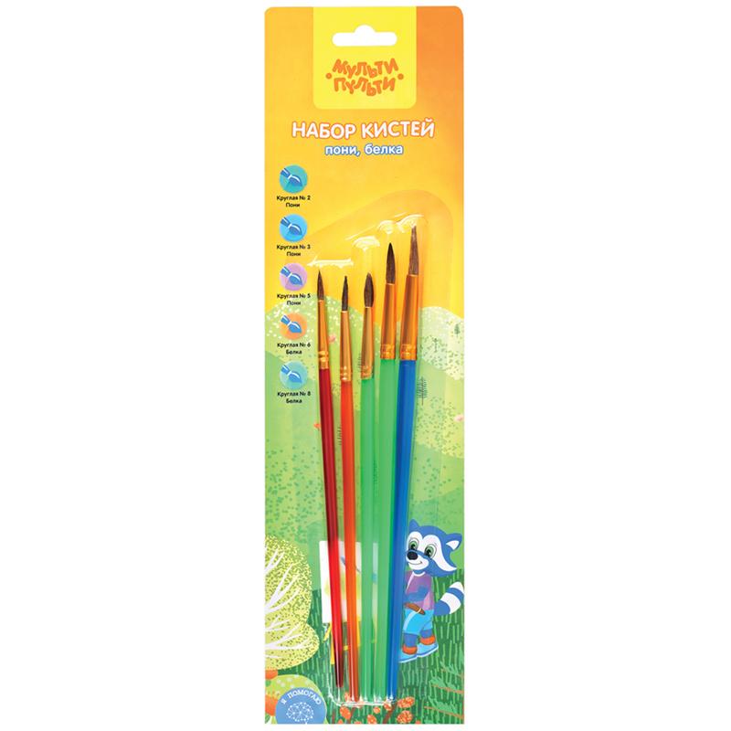Кисти н-р Мульти-Пульти 5шт, Пони, (№2,3, 5 круглые), Белка (№6,8, круглые) SB_37595