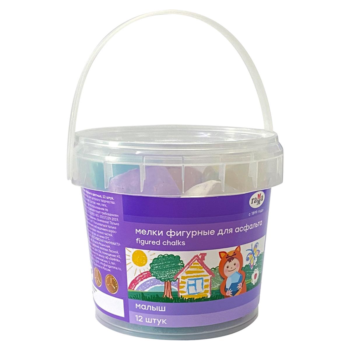 Мелки д/асфальта фигурные Гамма "Малыш", камешки, в ведерке 12шт 150220218