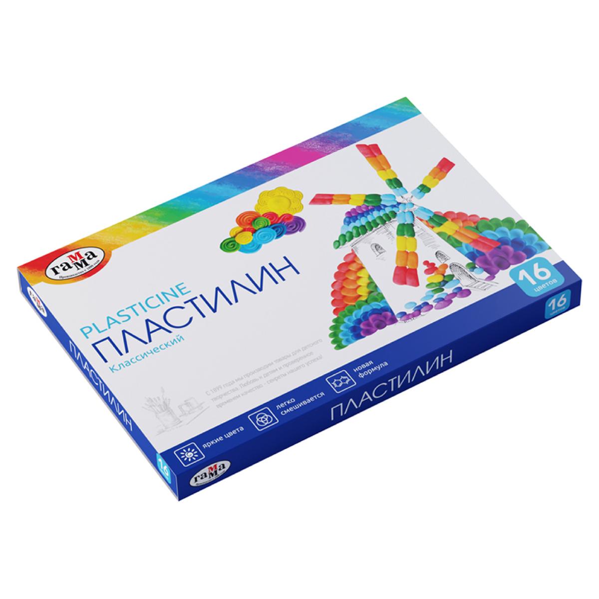 Пластилин 16цв. "Гамма. Классический" 320гр со стеком в к/к 281034