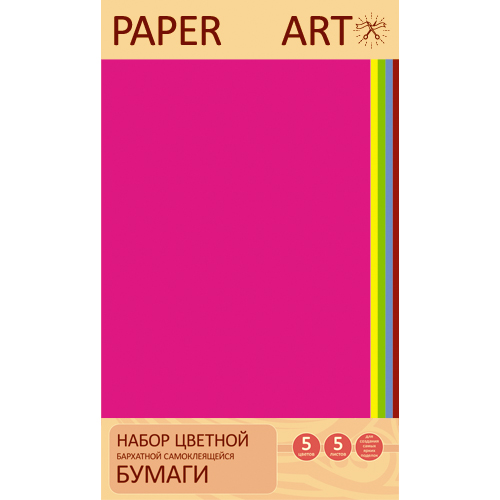 Бумага бархатная самокл. 5цв/5л. "Яркие аппликации" ББ 55286