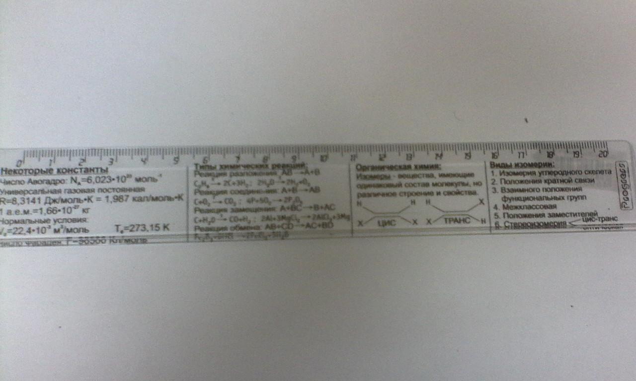 Линейка 20см справочная Химия С-93