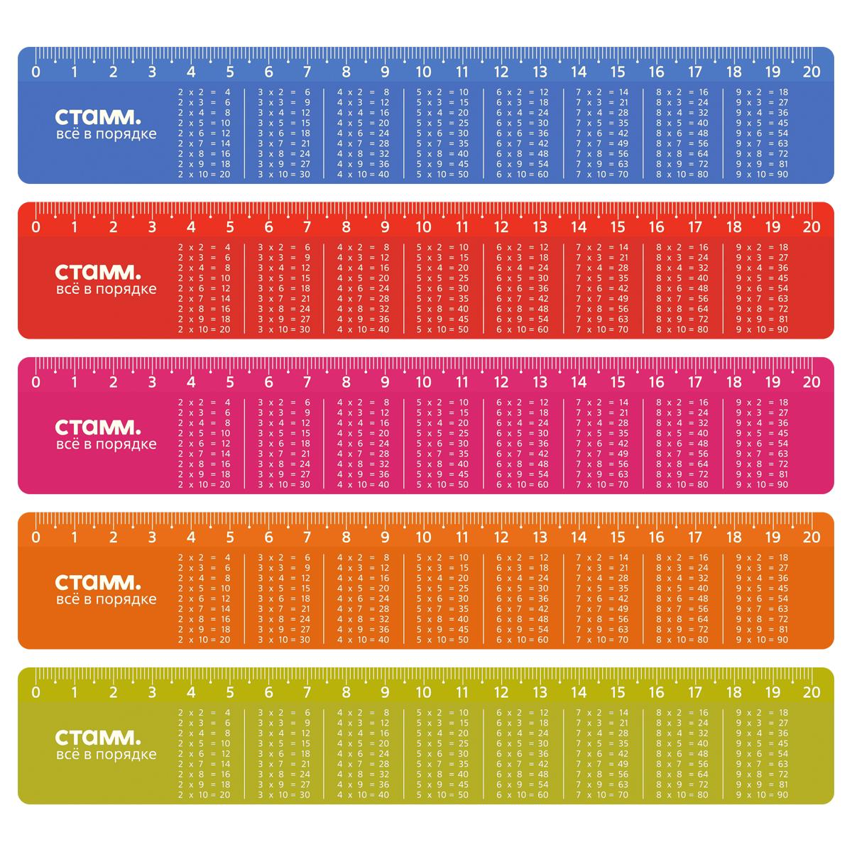 Линейка 20см справочная "Таблица умножения", ассорти ЛН-31411
