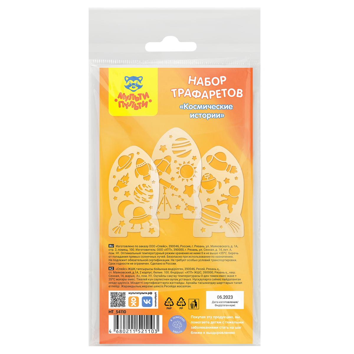 Трафареты н-р "Космические истории" 10*18см Мульти-Пульти 3шт. НТ_54110