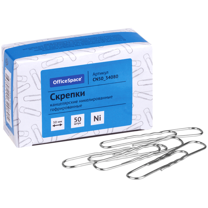 Скрепки 50мм никелир. 50шт/уп. OfficeSpace, гофрир. CN50_34080