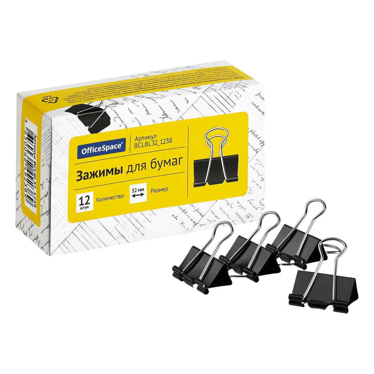 Зажим д/бумаг 3,2см 12шт/уп. черный OfficeSpace ВCLBL32_1238