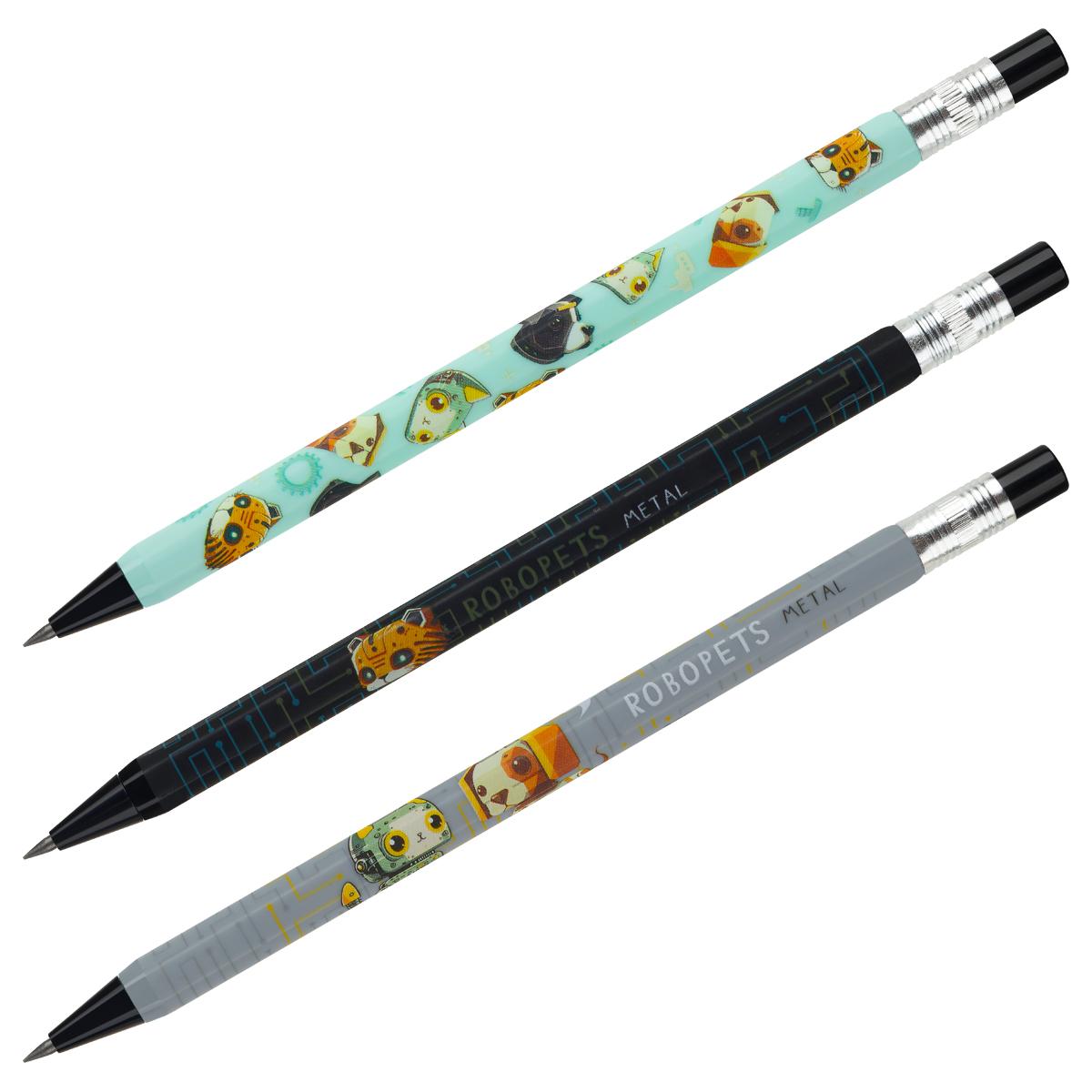 Карандаш автом. 2мм MESHU "Robopets", ассорти, с точилкой MS_53321