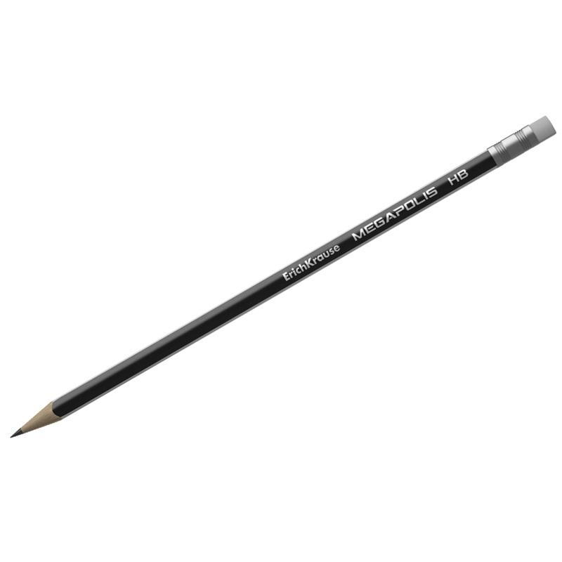 Карандаш ч/г НВ с ластиком "Megapolis" ЕК 43577