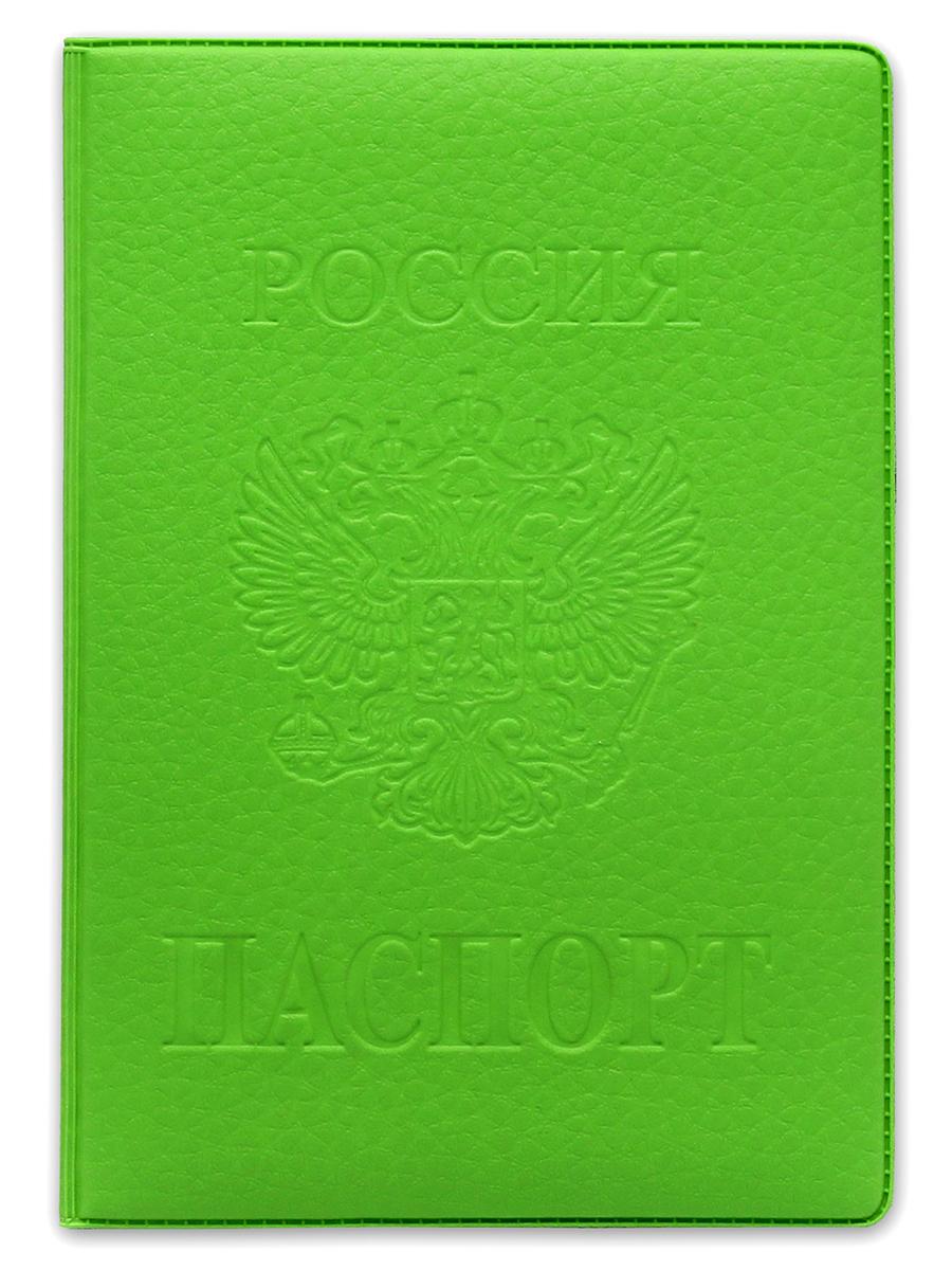 Обложка д/паспорта "Стандарт" с гербом, экокожа салатовая матовая ОП-9772