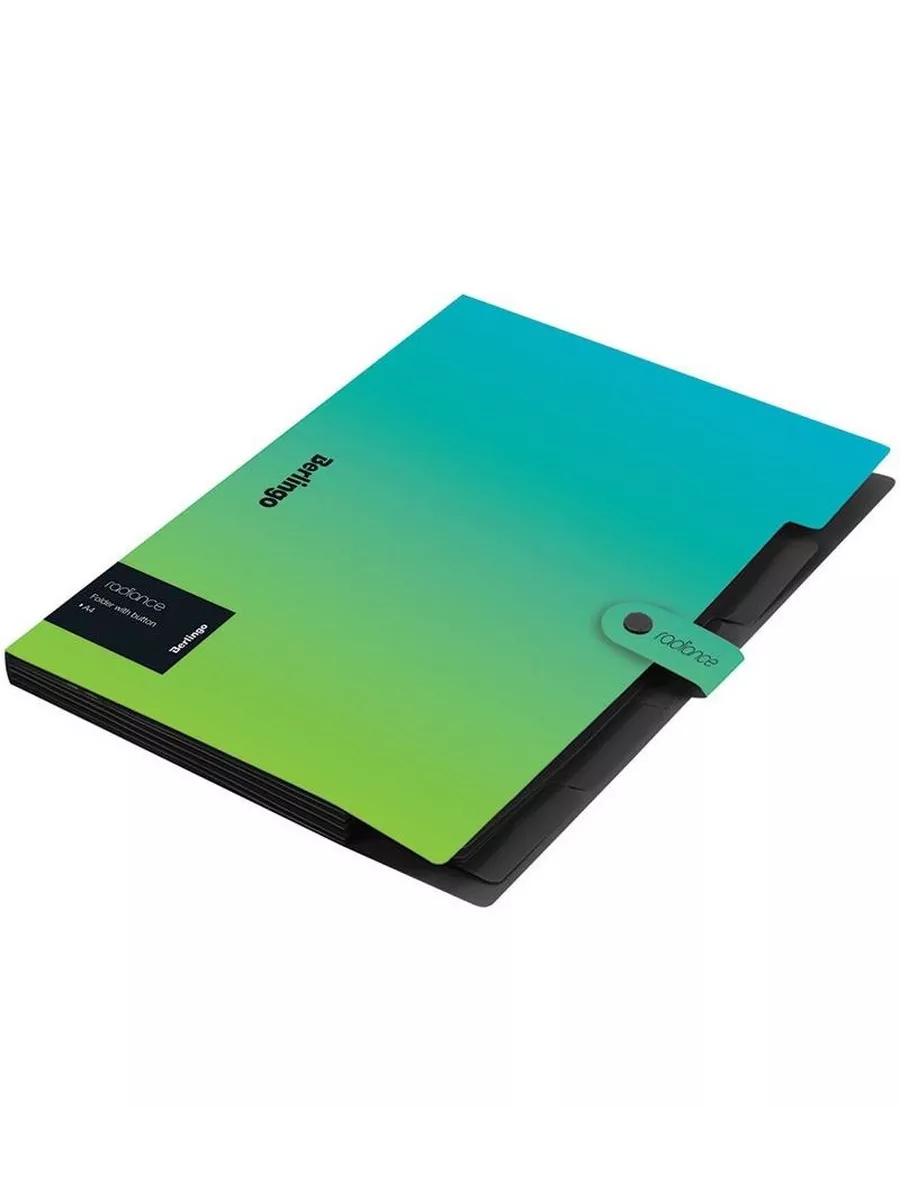 Портфель А4 пласт. 5 отд. на кнопке, голуб./зелен. Berlingo "Radiance" XF_05003