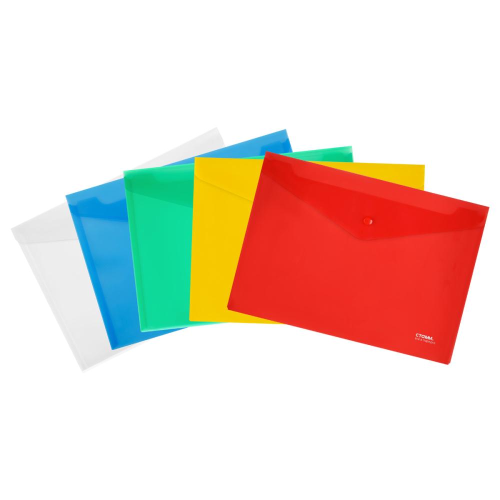 Папка-конверт с кнопкой А4 СТАММ, ассорти 180мкм ММ-31588