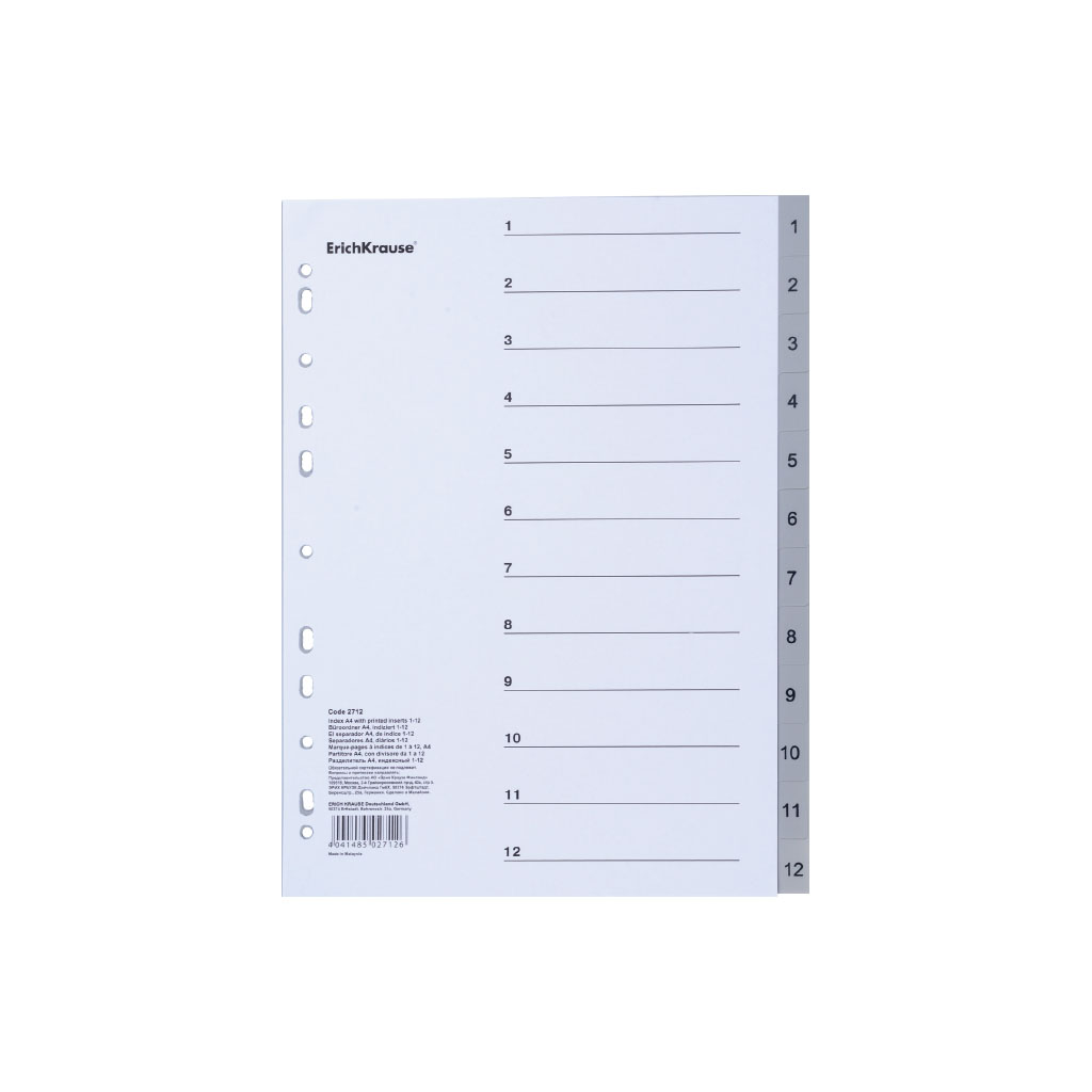 Разделитель А4 индексный (1-12), пластик. ЕК 55899