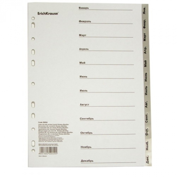Разделитель А4 по месяцам (Январь-Декабрь), пластик. EK 50054