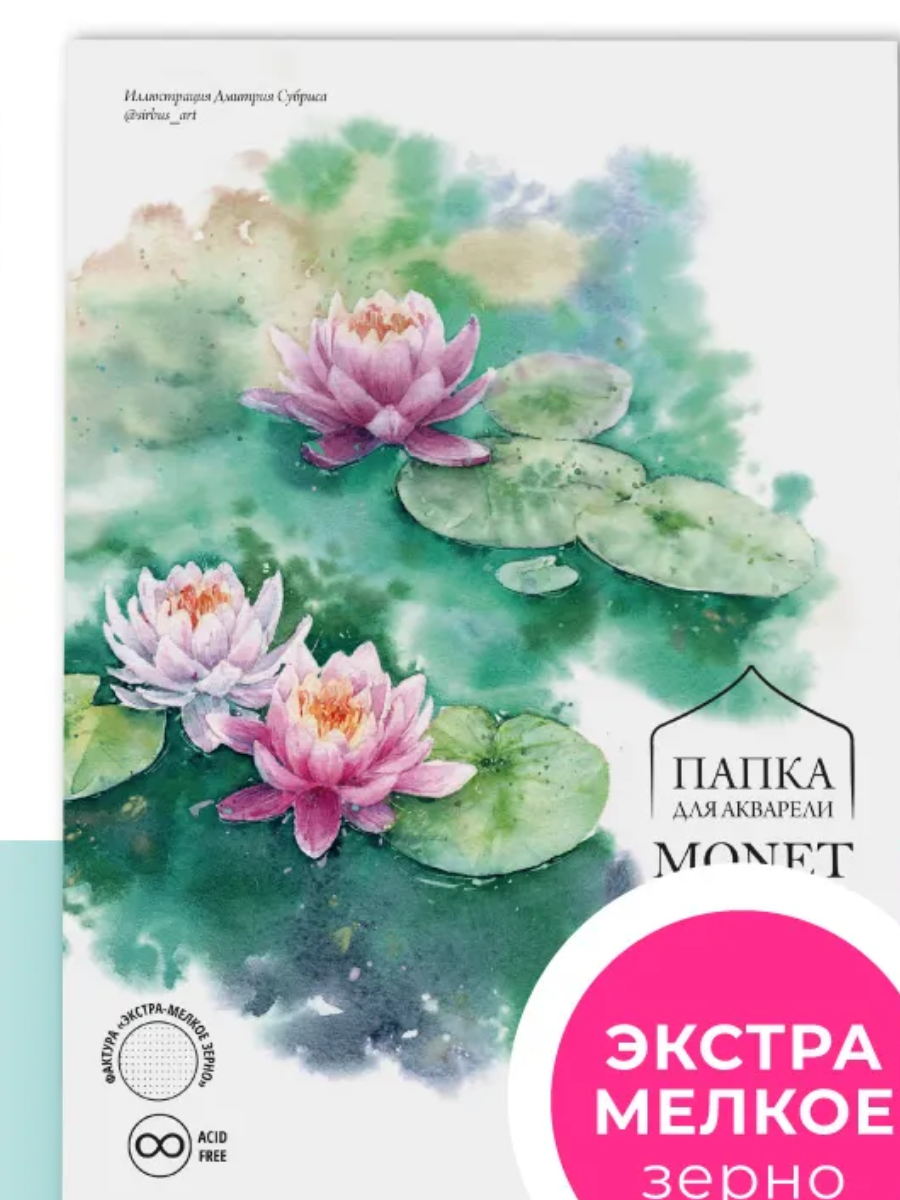 Папка для акварели Малевичъ Monet, 100% хлопок, 300 г/м, А4, экстра мелкое зерно, 10л