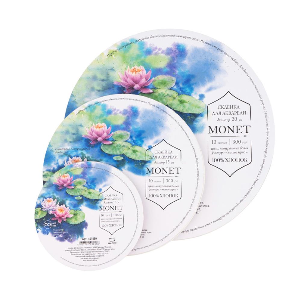 Склейка для акварели Monet, 100% хлопок, 300 г/м, Fin, круглая диаметр 10 см, 10л