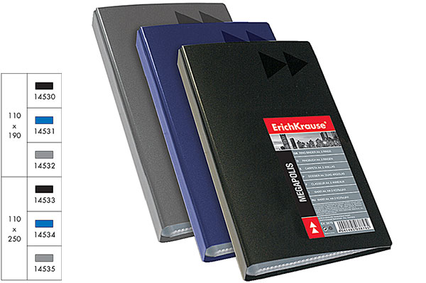 Визитница на 128 виз. (кляссер на 4 виз.) "Megapolis" черная, пластик. ЕК 14533