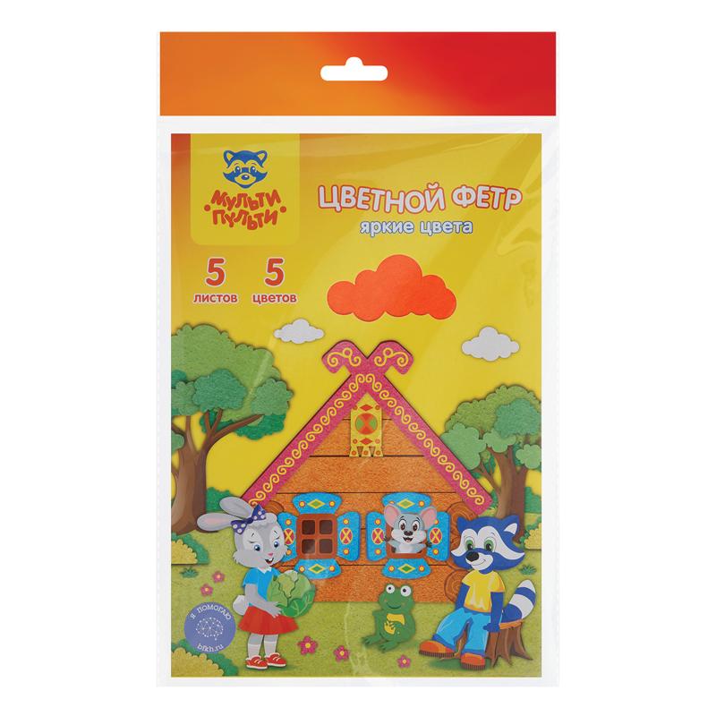 Фетр цветной А4 5л, 5цв., Мульти-Пульти "Приключения Енота" 2мм. флюоресцент. ФЦ5ф_18066