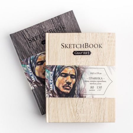 Скетчбук Малевичъ для графики GrafArt, Dark Wood, 9,5x14,5 см, 150 г/м, 80л