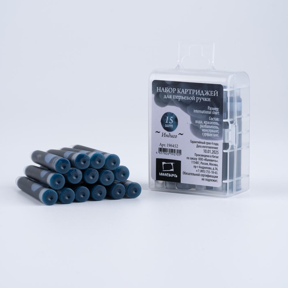 Набор картриджей Малевичъ для перьевой ручки, 15 шт, индиго